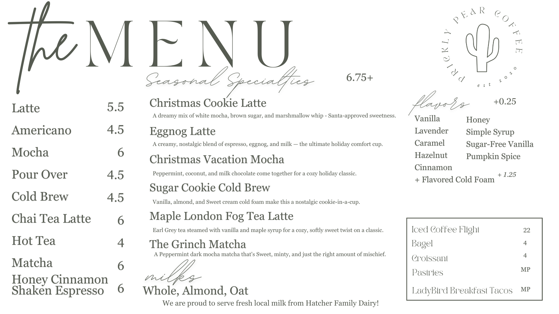 Prickly Pear Coffee Co. is an espresso bar in Nashville, Tennessee. Our goal is to combine the truth of the gospel with our passion for coffee. Our heart beats for Jesus + people. Across our two coffee shops, coffee cart, and 2 coffee campers, we strive for everyone to feel loved whenever they encounter our delicious, handcrafted coffee drinks and friendly, welcoming staff.